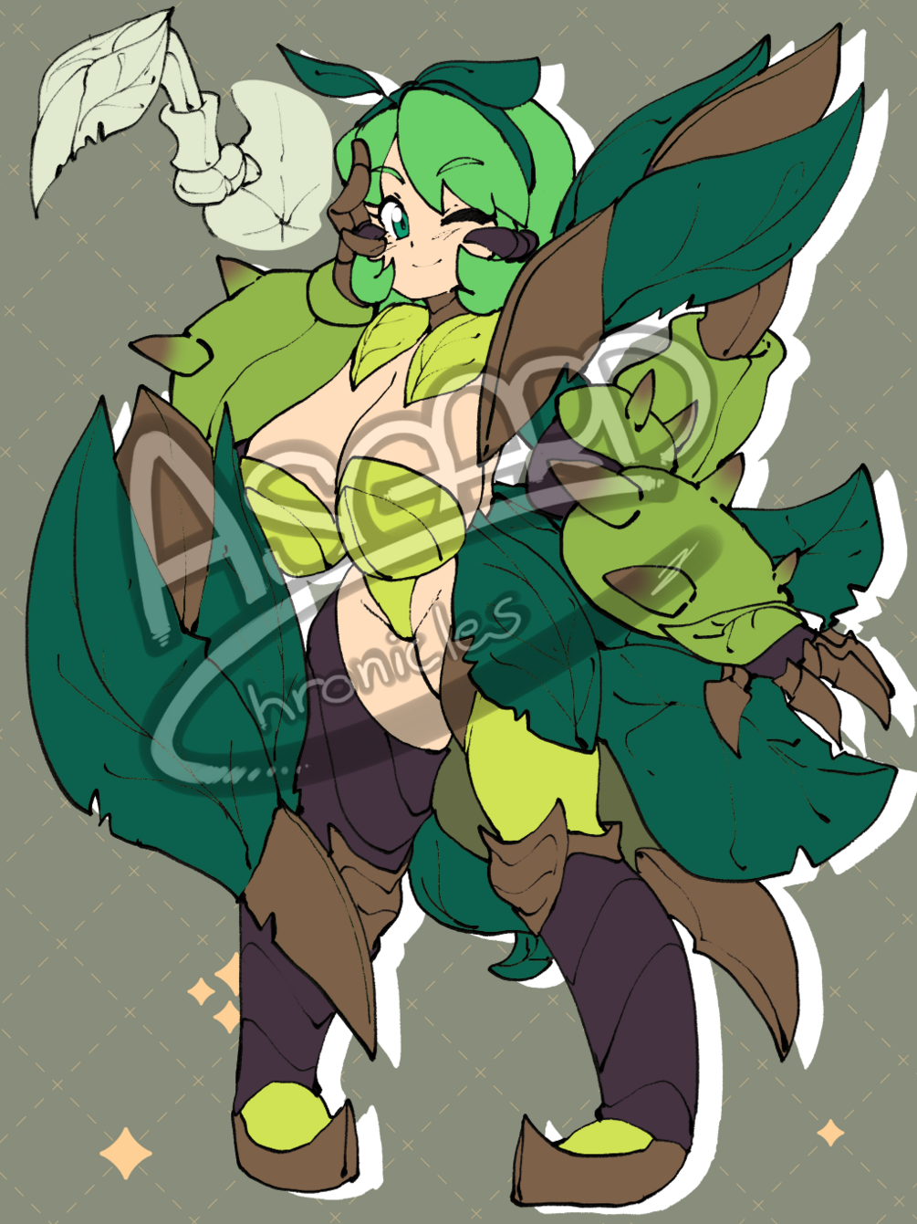 Thoughts about the Character - Kainé is a unique kind of dryad, the evolution and mixture of the trees and insects and so she is not bound to a single tree but instead to a colossal colony that was built inside a massive hollowed tree, her purpose is to bring life back to her forest by spreading the seeds inside her and helping them grow, fixing the destruction other species caused in her home. Kainé is usually gentle but she has no tolerance for people who would trample on her trees and bushes and she can become very valiant and protective when needed even tho it’s usually other more soldier-like types that goes to the frontline of battle