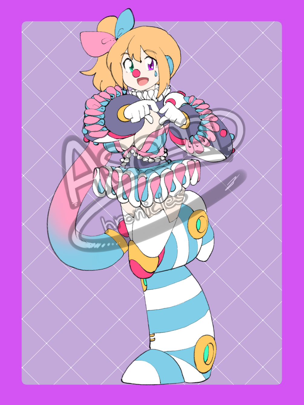 Thoughts about the Character - Julie Foole was a designed by a small group of children as the perfect playmate for them and developed specially for them by one of their parents. She wasn’t created with any means for battle, of course, but with very light alloy to allow flowy and light moves and with a great learning ability as the parents thought it soul be better if Julie could learn from the interactions with the kids and not only help them when they need but also keep them away from harm. Many years passed, those children grew up and had their own kids, but even if they always tried to keep Julie beside them she knew her time with them were over, they didn’t need a playmate anymore and so she decided to leave those, now, big-children behind to go and try to find younger ones who need a cute little clown that can play and protect them